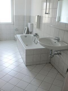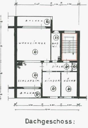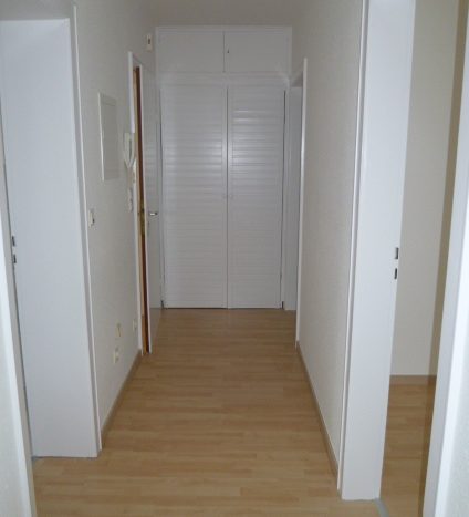 Alle Räume sind von der Diele (mit Einbauschrank) aus zu erreichen, ein sonniges Wohn-Esszimmer mit angrenzendem Westbalkon, von hier hat man einen schönen Grünblick, ein großes Schlafzimmer mit Ostbalkon, ein gemütliches Arbeits- oder Kinderzimmer, ein geräumige Küche mit Einbauküche und ein weiß gefließtes Wannenbad mit Fenster und Stellplatz für die Waschmaschine.